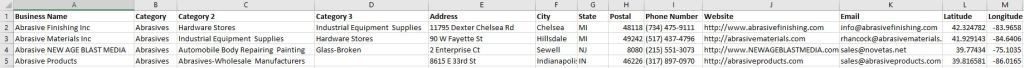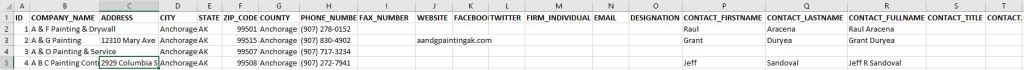 4. Apply second filter – A look at the resulting data indicates we still have many records that we do not want. As the client in interested in residential and commercial painting we do not need business that work on automobiles, face paint or paintball. We search and filter out those records.
